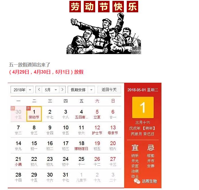 达晖生物祝广大新老客户朋友五一劳动节快乐!